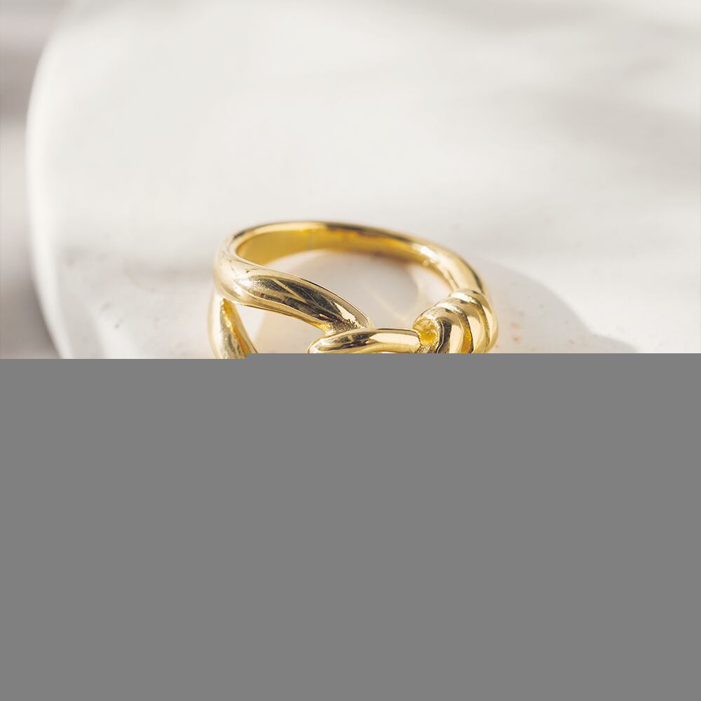 ロープが交差する、ボリューミーなデザインの指輪です。高級感を出し華やかな印象にしてくれます。